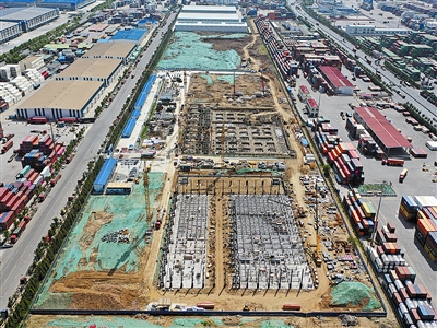 ■位于山东自贸试验区青岛片区的东北亚水产品交易中心暨国际生鲜冷链平台项目建设现场。 孙进涛 摄