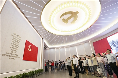 6月3日,党员在全新开馆的上海中共一大纪念馆里重温入党誓词。 新华社照片