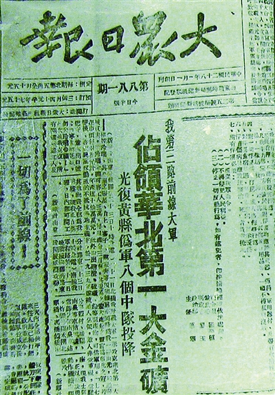 ⑤《大众日报》刊发的八路军占领招远玲珑金矿的消息。