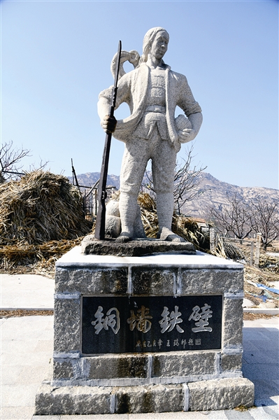 图三:平度大泽山抗日英雄纪念碑旁边屹立的民兵塑像。