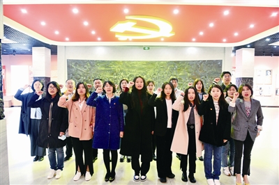 图九:共产党员在青岛市革命烈士纪念馆内重温入党誓词。