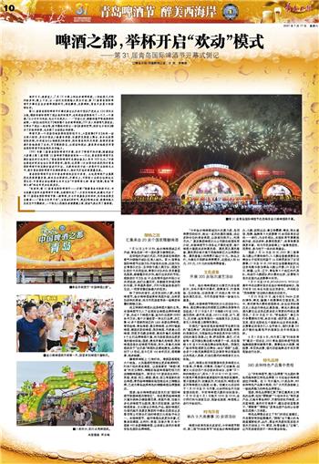 海风习习,清爽宜人,7月16日晚上的金沙滩啤酒城,一扫连续几天的闷热多雨。晚上8点,以一场灯光视频焰火秀为开场,第31届青岛国际啤酒节开幕式在金沙滩啤酒城举行。酒花飘香,光影辉映,青岛开启夏日的激情狂欢。