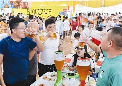 ■金沙滩啤酒城开城第一天,游客来到啤酒大篷畅饮。