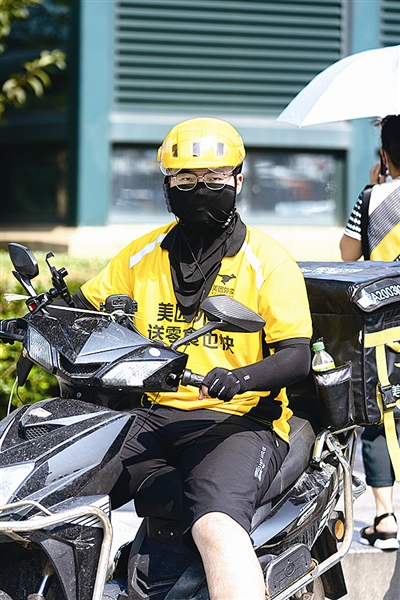 即使高温难耐,“外卖骑士”却在城市中穿行,他们穿梭在餐馆、街道、小区……将饭菜按时按点地送到顾客手中,几单外卖送下来,电动车、摩托车的座椅都已经洇上了汗渍,在太阳下来回奔波的时日久了,脸上、手上更是留下了清晰可见的痕迹。