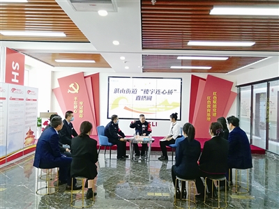 ■2021年3月,市南区湛山街道举行“楼宇连心桥”活动。