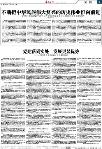企业强则国家强,企业兴则国家兴。立足党的百年新起点,开启全面建设社会主义现代化国家新征程,广大国有企业重任在肩、大有可为。只要把坚持党的领导、加强党的建设贯穿国有企业改革发展全过程各方面,国有企业就能迸发出无穷力量,就能为实现第二个百年奋斗目标、实现中华民族伟大复兴的中国梦作出新的更大贡献!