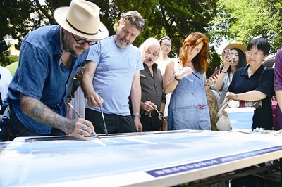 ■中外艺术家在青岛写生。 王 雷 摄