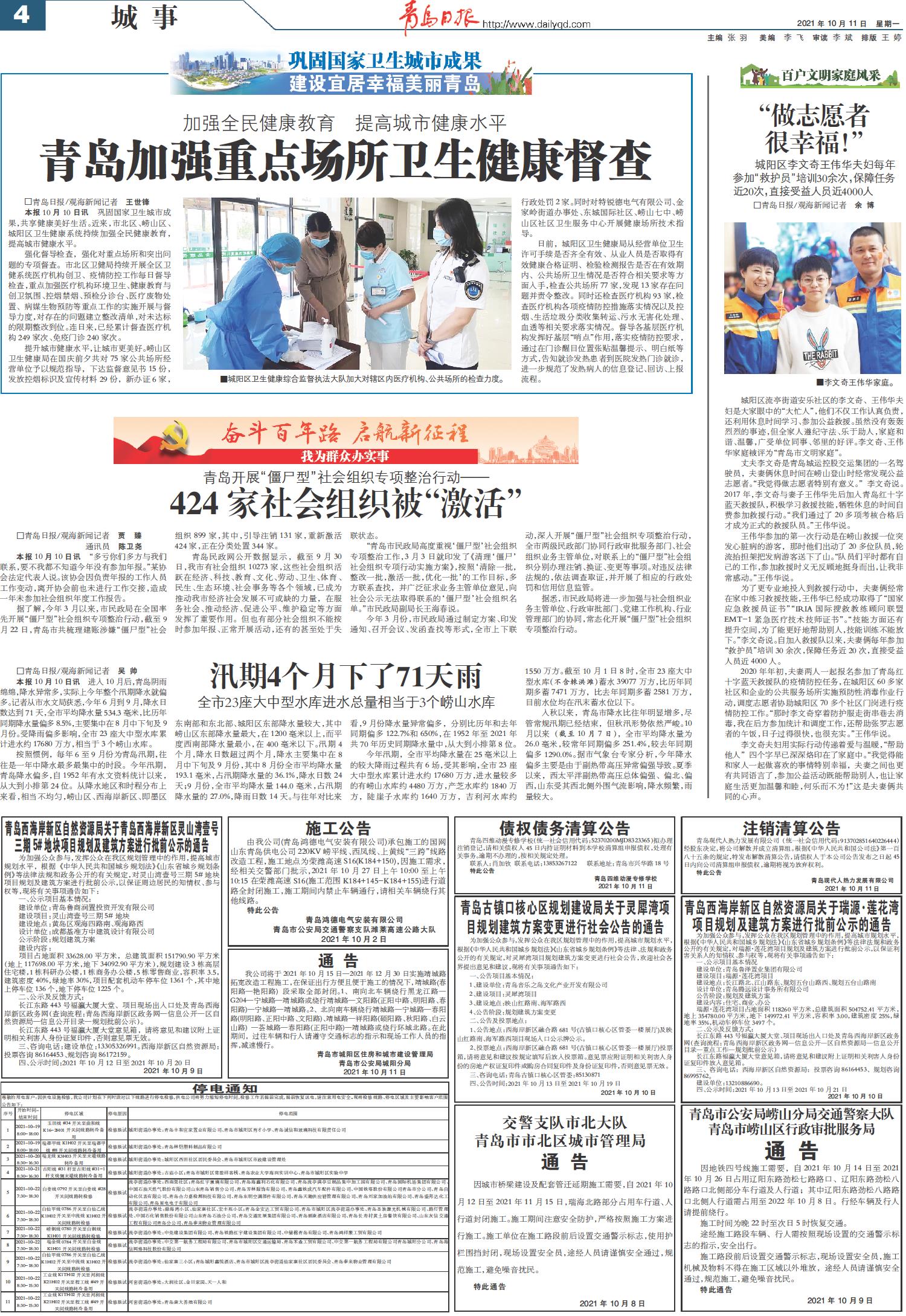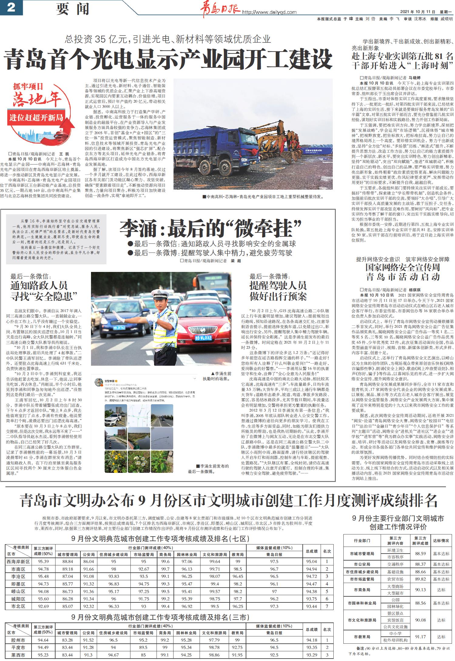青岛市文明办公布9月份区市文明城市创建工作月度测评成绩排名
