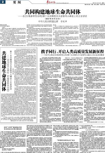 国家主席习近平12日下午以视频方式出席在昆明举行的《生物多样性公约》第十五次缔约方大会领导人峰会并发表主旨讲话,彰显大国领袖的担当和东道国的风范,高举共建地球生命共同体的旗帜,为推进全球生态文明建设注入信心,为未来全球生物多样性治理指明方向,为共同建设清洁美丽的世界擘画蓝图,必将产生重大深远的世界影响。