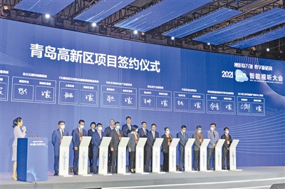 本报10月12日讯 在今天举办的2021(GIAC)智能视听大会现场,青岛高新区签约十个项目,总投资55.6亿元,涵盖半导体芯片、智慧医疗、衣联网等领域。