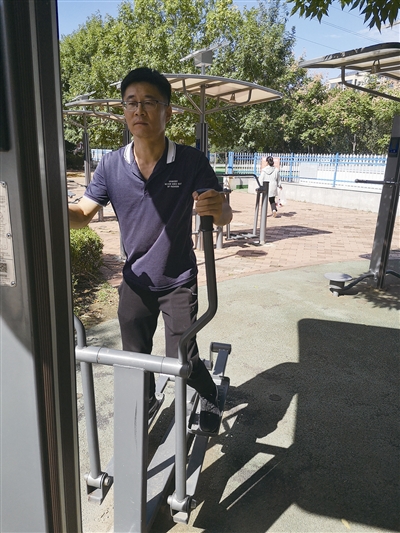 ■城阳区市民运动公园修葺一新,一位市民正在椭圆机上健身。