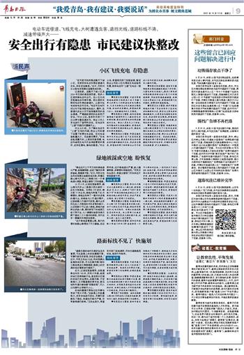 ●市民张女士留言:西海岸新区七墩山路宏程家天下小区的电动车棚无法满足业主停放电动车的需求,充电桩数量也不够,部分业主将电动车推进楼道内充电,存在安全隐患,希望相关部门督促责任单位清理在楼道内停放的电动车,并增加电动车充电桩数量,扩大车棚面积。