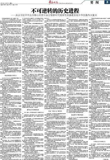 “中华民族迎来了从站起来、富起来到强起来的伟大飞跃,实现中华民族伟大复兴进入了不可逆转的历史进程!”