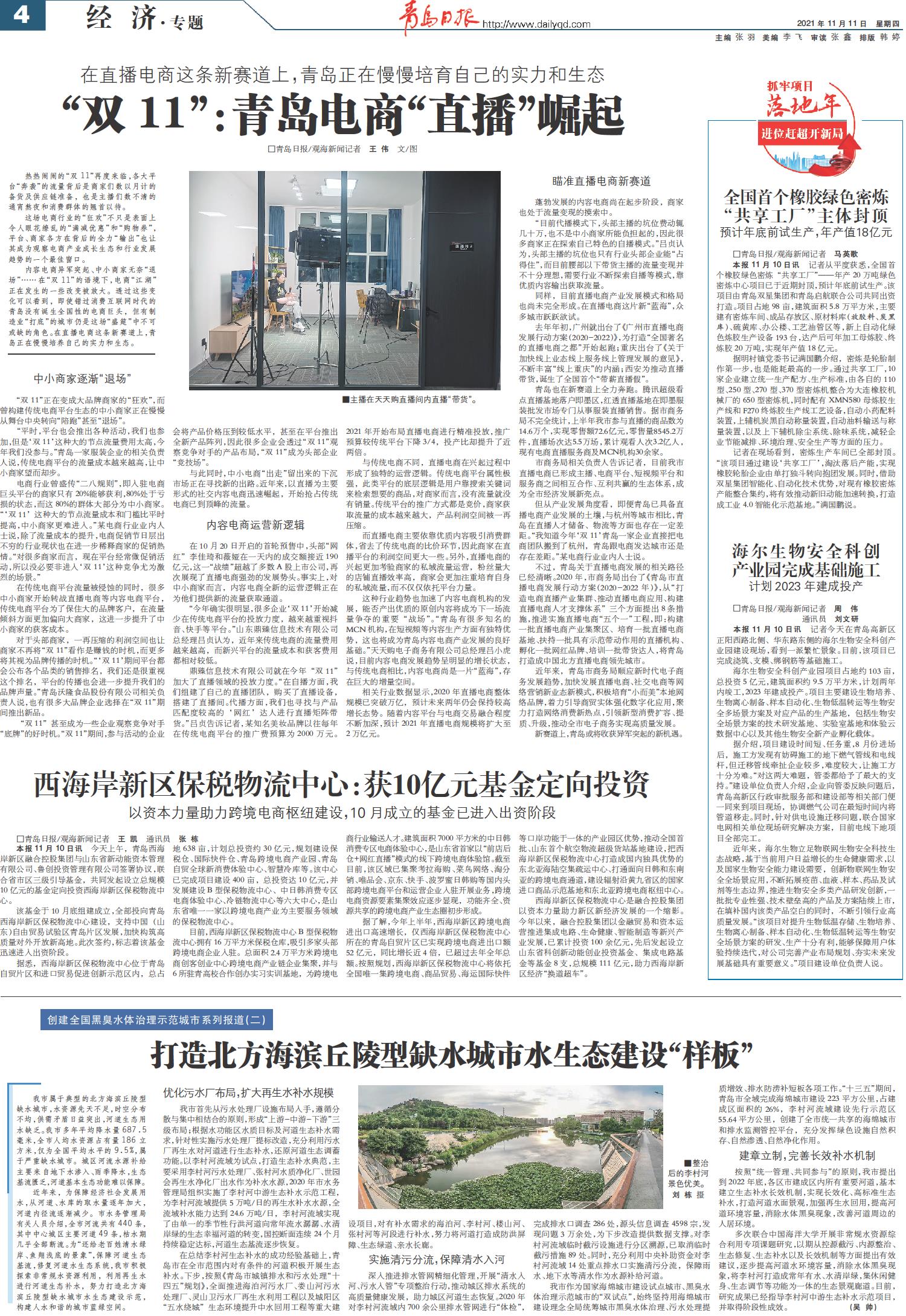 我市作为国家海绵城市建设试点城市、黑臭水体治理示范城市的“双试点”,始终坚持用海绵城市建设理念全局统筹城市黑臭水体治理、污水处理提质增效、排水防涝补短板各项工作。“十三五”期间,青岛市全域完成海绵城市建设223平方公里,占建成区面积的26%,李村河流域建设先行示范区55.64平方公里,创建了全市统一共享的海绵城市和排水监测管控平台,充分发挥绿色设施自然积存、自然渗透、自然净化作用。