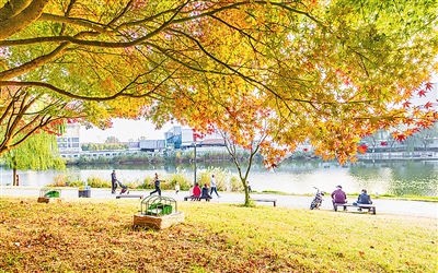 ■秋染李村河。 辛若珂 摄