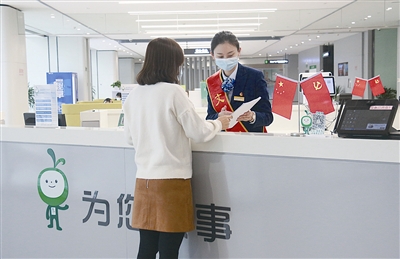■崂山区行政审批服务局帮办专员为群众提供“一站式”咨询引导服务。