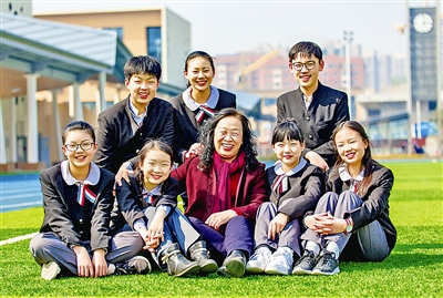 ■青岛为明学校校长雷丽霞(前排中)与学生们。