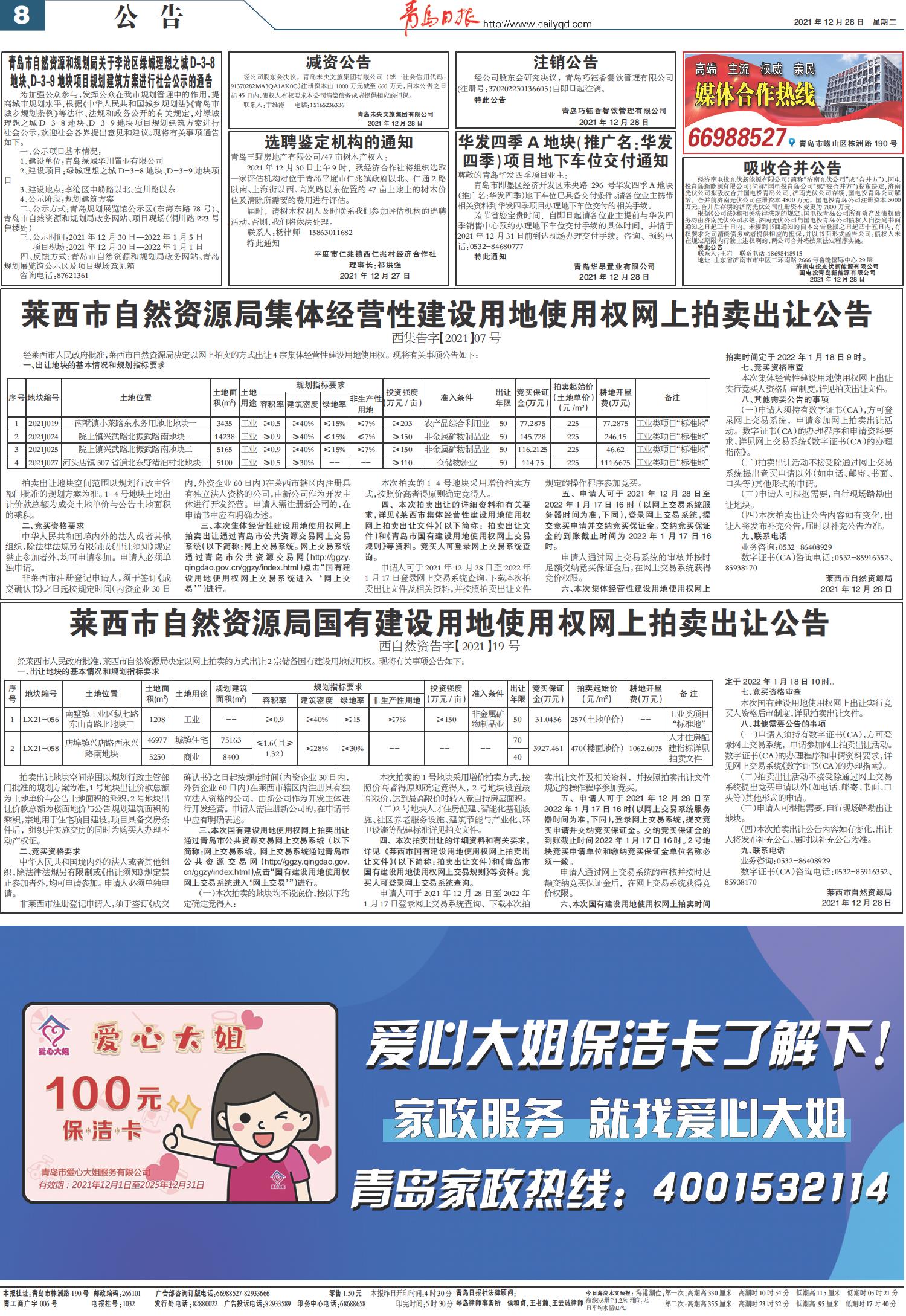 莱西市自然资源局国有建设用地使用权网上拍卖出让公告