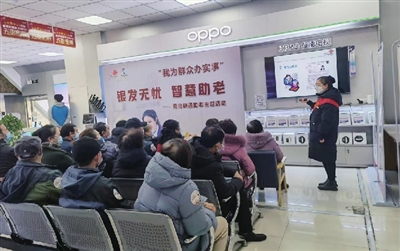 活动启动后,山东路营业厅助老服务专员李璀与来自金湖路街道的20余名老年朋友们一起,开展了老年智慧讲堂。在讲堂上生动形象地为老年人现场演示了智能手机的简单操作和常用App的使用方法和注意事项,同时系统地讲解了电信防骗常识,并给予针对性的防范建议。