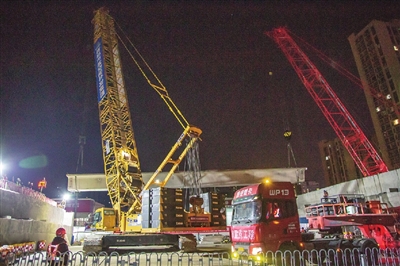 项目部对此次箱梁吊装高度重视、提前谋划、精心组织,项目经理靠上抓专项方案编制,从箱梁运输、现场调流、线网迁改到吊装作业的每一步工序以及当天的后勤应急保障等各环节进行详细周密部署。多次邀请集团以及公司桥梁施工经验丰富的技术人员到项目部具体指导,就专项方案提出更合理的意见建议,组织外部专家对方案进行评审论证,严格按照专家提出的建议对方案进行优化调整。为了能最大限度减少沿线交通压力以及方便周边居民出行,吊装作业选在夜间进行。这样对项目部的现场施工难度和安全管理水平提出了新的考验。