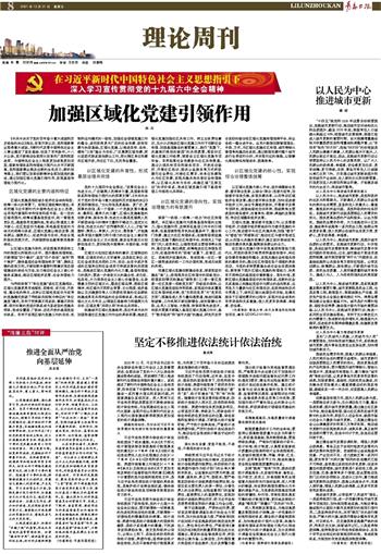 党的十九届四中全会提出,“发展社会主义先进文化、广泛凝聚人民精神力量,是国家治理体系和治理能力现代化的深厚支撑”。《中共中央关于党的百年奋斗重大成就和历史经验的决议》更是明确指出,“文化自信是更基础、更广泛、更深厚的自信,是一个国家、一个民族发展中最基本、最深沉、最持久的力量”。区域化党建彰显的创新多维、服务先导、先进文化都是党凝聚人民不断团结奋斗的精神力量和不竭动力。坚定文化自信,先进文化的广泛传播和深入人心,才能“举旗帜、聚民心、育新人、兴文化、展形象”,才能建设具有强大凝聚力和引领力的社会主义意识形态,建设社会主义文化强国,激发全民族文化创新创造活力,更好构筑中国精神、中国价值、中国力量。
