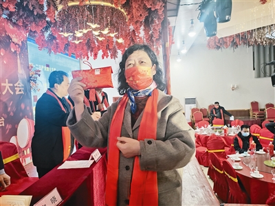 “你看看,我这回分得还不错吧。”杨书友拿着红包落座后,就向同桌的村民展示起她分到的2826元钱。“真稀罕人。”同桌的村民替她高兴,也有点羡慕。