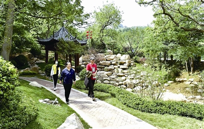 ■太平山路新口袋公园在去年夏天亮相,亭台水榭让市民流连忘返。 崔冬妮 摄
