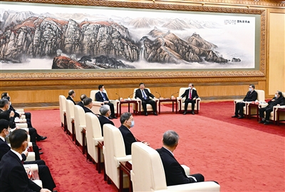 在听取丁仲礼致辞后,习近平发表了重要讲话。他强调,2021年是党和国家历史上具有里程碑意义的一年,也必将是载入史册的一年。我们办成了一系列大事要事,战胜了一系列风险挑战,推动党和国家事业取得新的重大成就。我们隆重庆祝中国共产党成立100周年,召开中共十九届六中全会、制定第三个历史决议,开展党史学习教育,如期打赢脱贫攻坚战,如期全面建成小康社会,实现第一个百年奋斗目标,开启全面建设社会主义现代化国家、向第二个百年奋斗目标进军新征程。我们从容应对百年变局和世纪疫情,完整、准确、全面贯彻新发展理念,构建新发展格局迈出新步伐,改革开放全面深化,民生保障扎实有效,生态文明建设持续推进,“十四五”实现良好开局。我们坚持人民至上、生命至上,坚持外防输入、内防反弹,坚持科学精准、动态清零,慎终如始抓好新冠肺炎疫情常态化防控,积极开展抗疫国际合作,经济发展和疫情防控保持全球领先地位。我们统筹发展和安全,注重防范化解各方面风险,规范社会主义市场经济秩序,弘扬社会主义核心价值观,营造积极健康、充满活力的发展环境。这些成绩的取得,是中共中央坚强领导的结果,也是包括各民主党派、工商联和无党派人士在内的统一战线广大成员同心奋斗的结果。实践证明,大家不愧是中国共产党的好参谋、好帮手、好同事。在此,我代表中共中央向大家表示衷心的感谢!