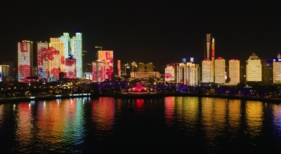 1月29日晚,浮山湾畔亮化设施“节日模式”绚丽开启,喜迎即将到来的虎年春节。这组亮化以“虎虎生威”为主题,次第呈现福虎迎春的形象和“平安、幸福、快乐”等新春祝辞。跃动的“全面建成小康社会、祝融探火、庆祝中国共产党成立100周年”等标语,带人们回首非凡的2021年,而“一起向未来”则表达了青岛人民对2022北京冬奥会的美好祝愿。