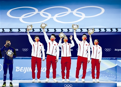 ■在首都体育馆举行的北京2022年冬奥会短道速滑项目混合团体接力决赛中,中国队夺得冠军。 新华社照片