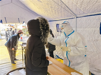 81岁的李女士用轮椅推着妹妹来到了核酸检测采样点,刷身份证、登记信息,不到5分钟两人就完成了采样。“做完核酸检测采样,正好推着妹妹在楼下转转,晒晒太阳。”李女士说。记者注意到,该时间段做核酸检测采样的主要为老人和孩子,年轻人多已外出上班,他们的核酸检测采样主要集中在早上或晚上时间段。“特殊时期,我们应该响应号召,配合做好防疫工作。每人贡献一份力量,才能让生活恢复如常。”尚乐城鞍山一路98号院2号楼居民刘女士,一早就跟老伴儿完成了核酸检测采样。