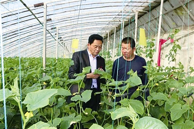 ■科技特派员王伦世(左)指导种植户管理黄瓜。