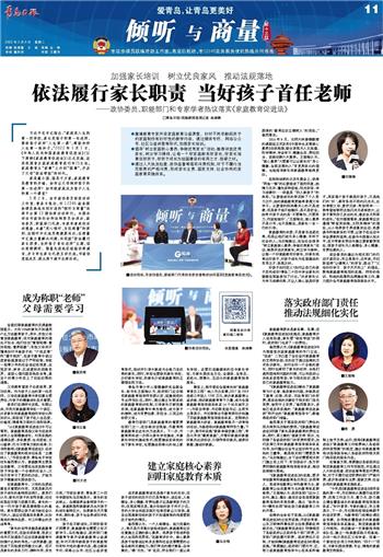 法律的生命在于实施。从《家庭教育促进法》的立法到实施,市政协常委、山东万桥律师事务所主任李勇都在持续关注。“《家庭教育促进法》明确规定了各级政府以及政府各个部门职责,只有部门积极履行职责,政府责任不空转,才能保障《家庭教育促进法》的落地实施。”李勇建议,政府部门要对市、区、街三级家庭教育指导中心在体系和编制上给予支持。此外,按照《家庭教育促进法》“家庭教育工作经费纳入各级政府财政预算”的规定,建议将家庭教育培训指导服务纳入各级政府和相关部门购买政府服务内容。