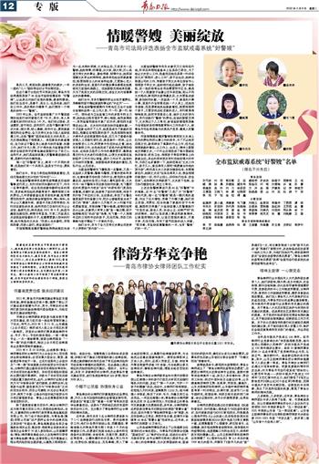 随着经济发展和职业平等观念的不断深入,越来越多优秀女性选择加入律师行业。在青岛律师业不断加快发展的进程中,青岛女律师的队伍也日趋壮大。截至目前,我市执业女律师近2800人,约占执业律师总人数的40%。青岛市律师协会女律师群体以女性特有的细腻和坚韧融合了法律的理性,以高度的敬业责任感和同理心投身法律服务业,在化解社会矛盾、心系民生、倾心公益的工作中体现了职业感和使命感,在我市经济和社会建设的各个领域,展现出女律师的芳华风采。