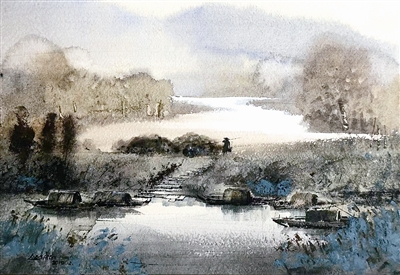 ■水彩《移舟泊烟渚》 梁修熙
