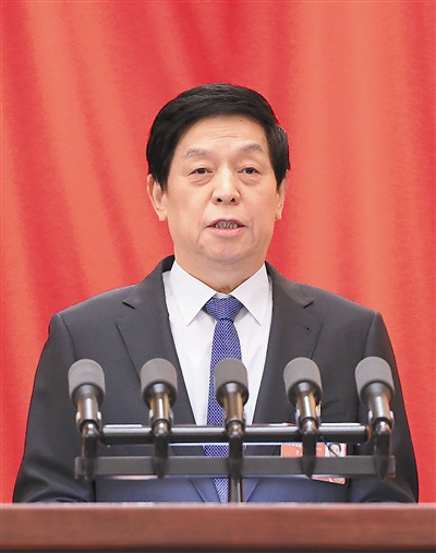受全国人大常委会委托,栗战书委员长向大会报告全国人大常委会工作。栗战书在报告中指出,2021年在人民代表大会制度历史上具有特殊重要意义。党中央首次召开人大工作会议,习近平总书记发表重要讲话,深刻回答了新时代发展中国特色社会主义民主政治、坚持和完善人民代表大会制度的一系列重大理论和实践问题,为做好新时代人大工作指明了前进方向、提供了根本遵循。