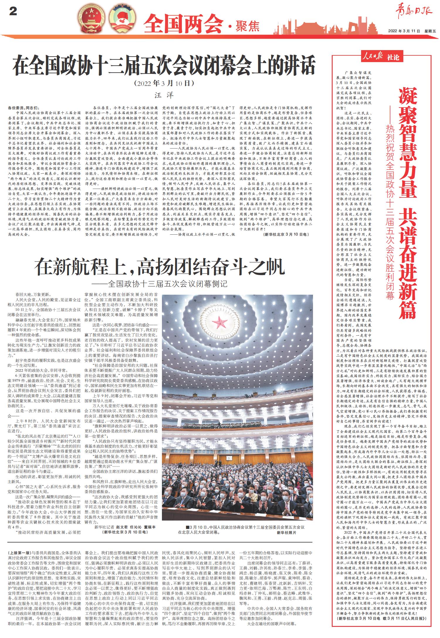 在全国政协十三届五次会议闭幕会上的讲话