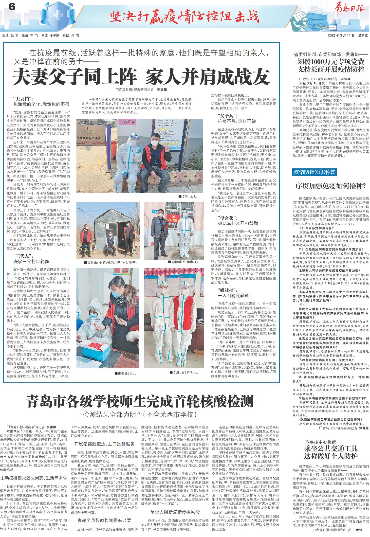 划拨1000万元专项党费 支持莱西开展疫情防控