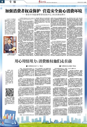今天是3·15国际消费者权益日,2022年消费维权年主题为“共促消费公平”。消费者权益保护工作贴近人民群众、贴近发展大局,备受社会各界关注。青岛市市场监管局如何学习贯彻党的十九届六中全会精神,加强消费者权益保护,营造安全放心的消费环境?如何谋划2022年相关重点工作?青岛市市场监管局党组书记、局长高善武解答了大家关心的问题。