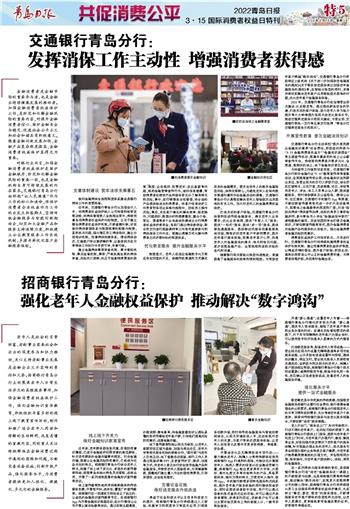 老年人是社会的宝贵财富,老龄事业需要社会和企业的深度参与和协力推动,关心支持老龄事业发展是金融企业义不容辞的责任和义务。招商银行青岛分行主动聚焦老年人日常生活涉及的高频服务事项,加强金融消费者权益保护工作,强化金融知识宣传教育,积极组织丰富多彩的线上线下教育宣传活动,制作和推广适合老年人阅读和理解的生动鲜明、浅显易懂的宣教内容,同时重点关注特殊群体在金融消费过程中遇到的困难和问题,不断完善设备设施,创新升级产品,强化服务水平,为消费者提供更加人性化、便捷化、多元化的金融服务。