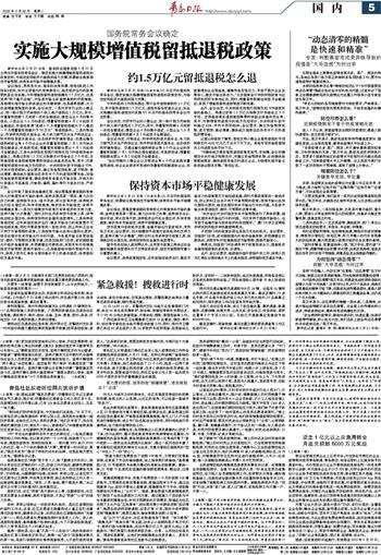 会议指出,贯彻党中央、国务院决策部署,按照《政府工作报告》安排,针对当前国内外形势新变化,稳定经济运行的政策要抓紧出台实施。今年增值税留抵退税规模约1.5万亿元,这是坚持“两个毫不动摇”、对各类市场主体直接高效的纾困措施,是稳增长稳市场主体保就业的关键举措,也是涵养税源、大力改进增值税制度的改革。会议决定,一是对所有行业的小微企业、按一般计税方式纳税的个体工商户退税近1万亿元。其中,存量留抵税额6月底前一次性全额退还,微型企业4月份集中退还,小型企业5、6月份退还;增量留抵税额4月1日起按月全额退还,阶段性取消“连续6个月增量留抵税额大于0、最后一个月增量留抵税额大于50万元”等退税条件。二是对制造业、科学研究和技术服务业、电力热力燃气及水生产和供应业、软件和信息技术服务业、生态保护和环境治理业、交通运输仓储和邮政业等6个行业企业的存量留抵税额,7月1日开始办理全额退还,年底前完成;增量留抵税额也要从4月1日起按月全额退还。三是中央财政在按现行税制负担50%退税资金的基础上,再通过安排1.2万亿元转移支付资金设立3个专项,支持基层落实退税减税降费和保就业保基本民生等。其中,对新增留抵退税中的地方负担部分,中央财政补助平均超过82%、并向中西部倾斜。会议要求,建立资金预拨机制,逐月预拨、滚动清算,确保地方国库动态存有半个月的退税所需资金。加强资金监管和国库管理,确保退税资金直达市场主体、对地方的补助直达市县基层,对偷税、骗税、骗补等行为坚决打击、严惩不贷。