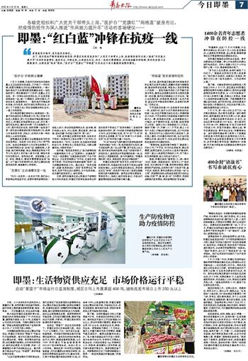 据悉,即墨区依托“镇街党(工)委—新村(社区)党委—网格党组织—党员中心户”组织体系,充分调动各方力量,筑牢联防联控、群防群治的严密防线。动员和引导广大党员干部、基干民兵、网格员、青年志愿者化身防疫一线“主力军”,把疫情防控的主阵地变成党员行动的主战场,对照“严、真、细、实、快”工作要求,用实际成果践行党员责任,筑牢疫情防控“安全墙”。