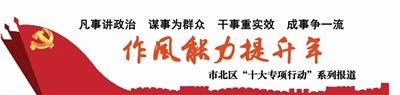 “刀要在石上磨,人要在事上练”,这是市北区在“作风能力提升年”活动启动之初对广大党员提出的基本要求——不光要练冲上顶上的作风,也要练攻克难关的能力。