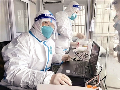 图④:市北区2000多名医护人员奋战在一线。 王 平 摄