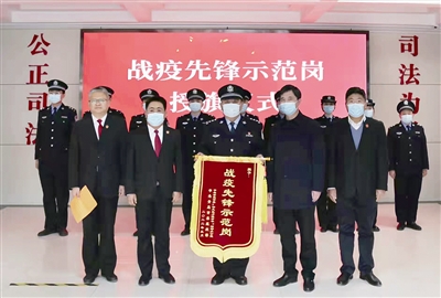 ■青岛市委“作风能力提升年”活动领导小组办公室、市委组织部日前联合印发《关于通报表扬一批“战疫先锋示范岗”的决定》,即墨法院法警大队受到表扬。3月18日,即墨区委组织部有关负责人给即墨法院法警大队授予先锋示范岗的红旗。