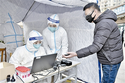 ■千余名社区工作者协助医护人员完成核酸检测登记。崔冬妮 摄