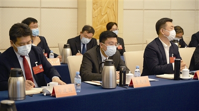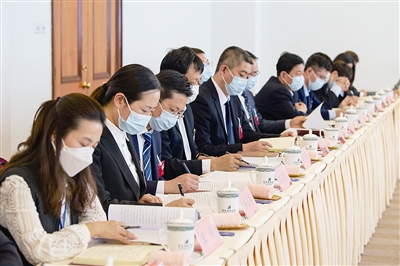 在府新大厦驻地,莱西市代表团代表在审议党代会报告。 于 滈 摄