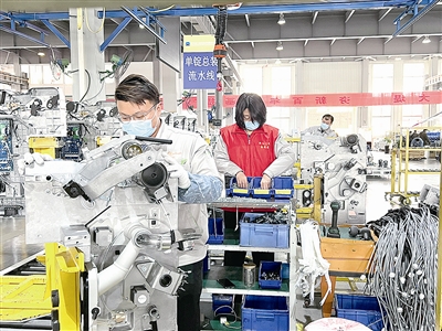 ■在青岛宏大纺机,党员干部与一线员工齐心协力,加班加点赶订单。 衣 涛 摄
