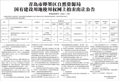 青岛市即墨区自然资源局国有建设用地使用权网上拍卖出让公告