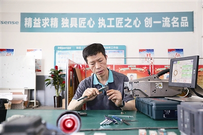 于是,刘广齐在16年时间里,通过不定期组织技能培训,每年培训达1000人次,带徒30余名,其中包括海信集团高级技师1名、技师3名、高级技工7名。目前他带着3个维修班共计50多名维修人员,负责3个车间的设备保养维修工作。他对生产线上的各种先进制造装备技术特点烂熟于心,只要在车间遇到棘手的难题,年轻的维修工总会第一时间向他“求助”,而他也是倾囊相助、毫无保留。